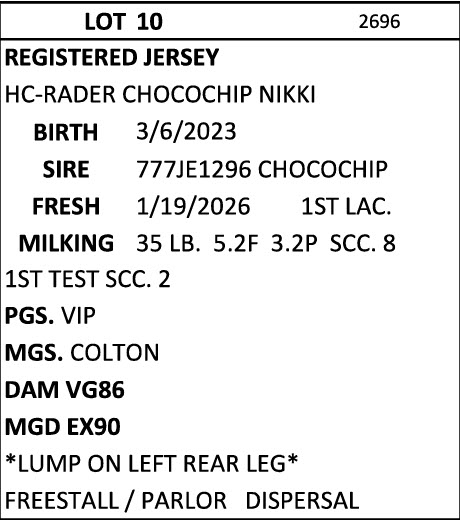BRUBACKER'S MARCH Monthly Production Sale