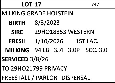 BRUBACKER'S MARCH Monthly Production Sale