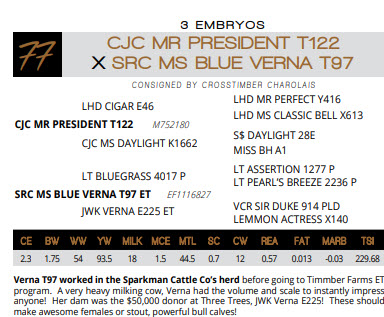 CJC MR PRESIDENT T122 77 X SRC MS BLUE VERNA T97