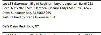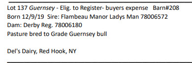 ORN 5/5/2020 Pasture bred to Grade Guernsey Bull