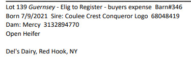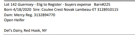 Born 4/18/2020 Sire: Coulee Crest Novak Lambeau-ET 3128910115