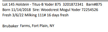 Fresh 3/6/22 Milking 111# 16 days fresh