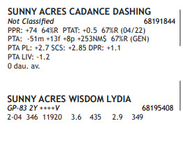 BORN 09/20/2017 MILKING 47 LBS Fresh 9/2/21 VG-86 VVV+V 2Y 2-03 365 17990 4.0 724 3.2 583 233D 13920M Inc BRED 4/15/22 TO SHILOH BROOKNGS CADENCE ET *TM 71130650