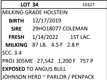 SPECIAL DAIRY COW AND HEIFER SALE AT BRUBACKER'S