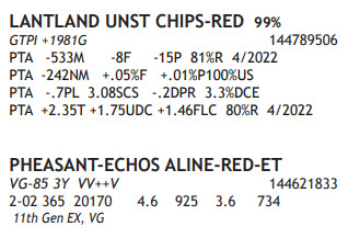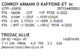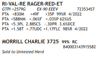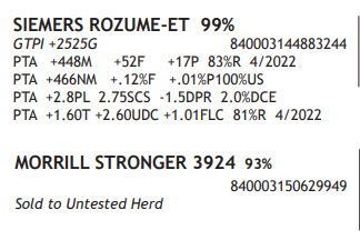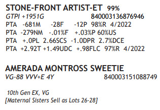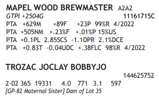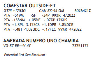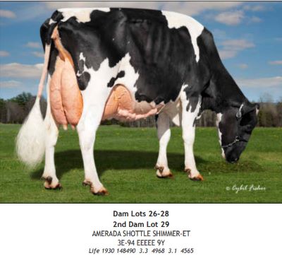 ALL BREED SUMMER PRODUCTION SALE 6096 NYS Route 8, New Berlin NY, 13411 Selling 130 Head Contact Agent: Katie Schultz 717-543-7883 Catalog | Terms of Auction Download CATALOG Download UPDATES Download ADDED LOTS Download SALE ORDER Catalog | Terms Download CATALOG Download UPDATES Download ADDED LOTS Download SALE ORDER All Items (183) Cattle (156) Embryos (3) Semen (24) Categories All Items (183) Cattle (156) Embryos (3) Semen (24) Search Item #: Keyword: Search Catalog Item #: Keyword: 20 items per page 50 items per page 100 items per page Go to page #: 1 , 2 , 3 , 4 , 5 , 6 #17 – MORRILL ADDICTION 4000 From 5E-95 Fayfor FamilyBORN 08/01/2018 SELLS FRESH VG-85 3Y +V++V SCC 45,000 Location: 6096 NYS Route 8, New Berlin NY, 13411 Contact Agent: Katie Schultz 717-543-7883 More Info / Bid Now Track this Item Sold High Bid: $2,600.00 – #5158 #17 – MORRILL ADDICTION 4000 Sold High Bid: $2,600 More Details More Info / Bid Track Item From 5E-95 Fayfor FamilyBORN 08/01/2018 SELLS FRESH VG-85 3Y +V++V SCC 45,000 Location: 6096 NYS Route 8, New Berlin NY, 13411 Contact Agent: Katie Schultz 717-543-7883 #18 – MORRILL UNSTOPABULL 4113 BORN 07/28/2019 SELLS FRESH 7/6/22 GP-82 2Y +++++ 1-11 305 24870 4.1 931 3.3 776 SCC 40,000 Location: 6096 NYS Route 8, New Berlin NY, 13411 Contact Agent: Katie Schultz 717-543-7883 More Info / Bid Now Track this Item Sold High Bid: $2,700.00 – #1127 #18 – MORRILL UNSTOPABULL 4113 Sold High Bid: $2,700 More Details More Info / Bid Track Item BORN 07/28/2019 SELLS FRESH 7/6/22 GP-82 2Y +++++ 1-11 305 24870 4.1 931 3.3 776 SCC 40,000 Location: 6096 NYS Route 8, New Berlin NY, 13411 Contact Agent: Katie Schultz 717-543-7883 #19 – MORRILL CONCLUSION 4232 BORN 05/21/2020 MILKING 82 LBS Fresh 5/28/22 4.0/3.2 SCC 76,000 PTPI +2286 Location: 6096 NYS Route 8, New Berlin NY, 13411 Contact Agent: Katie Schultz 717-543-7883 More Info / Bid Now Track this Item Sold High Bid: $2,100.00 – #100 #19 – MORRILL CONCLUSION 4232 Sold High Bid: $2,100 More Details More Info / Bid Track Item BORN 05/21/2020 MILKING 82 LBS Fresh 5/28/22 4.0/3.2 SCC 76,000 PTPI +2286 Location: 6096 NYS Route 8, New Berlin NY, 13411 Contact Agent: Katie Schultz 717-543-7883 #20 – MORRILL ROZUME 4242 BORN 06/25/2020 MILKING Fresh 6/25/22 PTPI +2400 Location: 6096 NYS Route 8, New Berlin NY, 13411 Contact Agent: Katie Schultz 717-543-7883 More Info / Bid Now Track this Item Sold High Bid: $2,000.00 – #100 #20 – MORRILL ROZUME 4242 Sold High Bid: $2,000 More Details More Info / Bid Track Item BORN 06/25/2020 MILKING Fresh 6/25/22 PTPI +2400 Location: 6096 NYS Route 8, New Berlin NY, 13411 Contact Agent: Katie Schultz 717-543-7883 #21 – MORRILL RAGER 4253 BORN 07/14/2020 MILKING Fresh 6/25/22 PTPI +2243 Location: 6096 NYS Route 8, New Berlin NY, 13411 Contact Agent: Katie Schultz 717-543-7883 More Info / Bid Now Track this Item Sold High Bid: $2,100.00 – #100 #21 – MORRILL RAGER 4253 Sold High Bid: $2,100 More Details More Info / Bid Track Item BORN 07/14/2020 MILKING Fresh 6/25/22 PTPI +2243 Location: 6096 NYS Route 8, New Berlin NY, 13411 Contact Agent: Katie Schultz 717-543-7883 #22 – MORRILL RAGER 4251-RED BORN 07/10/2020 MILKING 7/3/22 PTPI +2297 Location: 6096 NYS Route 8, New Berlin NY, 13411 Contact Agent: Katie Schultz 717-543-7883 More Info / Bid Now Track this Item Sold High Bid: $2,050.00 – #158 #22 – MORRILL RAGER 4251-RED Sold High Bid: $2,050 More Details More Info / Bid Track Item BORN 07/10/2020 MILKING 7/3/22 PTPI +2297 Location: 6096 NYS Route 8, New Berlin NY, 13411 Contact Agent: Katie Schultz 717-543-7883 #23 – MORRILL DENVER 4001 BORN 08/02/2018 SELLS FRESH GP-83 +V+G+ 3Y 1-11 300 25210 3.9 992 3.3 821 2-10 359 27500 1183 989 Location: 6096 NYS Route 8, New Berlin NY, 13411 Contact Agent: Katie Schultz 717-543-7883 More Info / Bid Now Track this Item No Bids Starting at $1,000.00 Login to Bid #23 – MORRILL DENVER 4001 Starting at $1,000.00 Login to Bid More Details More Info / Bid Track Item BORN 08/02/2018 SELLS FRESH GP-83 +V+G+ 3Y 1-11 300 25210 3.9 992 3.3 821 2-10 359 27500 1183 989 Location: 6096 NYS Route 8, New Berlin NY, 13411 Contact Agent: Katie Schultz 717-543-7883 #24 – TROZAC PENDING BORN 07/04/2020 MILKING Fresh 7/17/22 Location: 6096 NYS Route 8, New Berlin NY, 13411 Contact Agent: Katie Schultz 717-543-7883 More Info / Bid Now Track this Item Sold High Bid: $1,400.00 – #359 #24 – TROZAC PENDING Sold High Bid: $1,400 More Details More Info / Bid Track Item BORN 07/04/2020 MILKING Fresh 7/17/22 Location: 6096 NYS Route 8, New Berlin NY, 13411 Contact Agent: Katie Schultz 717-543-7883 #25 – TROZAC OKAFF OLIVE BORN 06/10/2020 SELLS FRESH Fresh 7/24/22 Location: 6096 NYS Route 8, New Berlin NY, 13411 Contact Agent: Katie Schultz 717-543-7883 More Info / Bid Now Track this Item Sold High Bid: $1,800.00 – #100 #25 – TROZAC OKAFF OLIVE Sold High Bid: $1,800 More Details More Info / Bid Track Item BORN 06/10/2020 SELLS FRESH Fresh 7/24/22 Location: 6096 NYS Route 8, New Berlin NY, 13411 Contact Agent: Katie Schultz 717-543-7883 #26 – AMERADA KINGBOY SHINE BORN 10/19/2018 From 3E-94 Shimmer Maternal Sisters Sell Lots 27,28 MILKING Fresh 7/4/22 VG-86 3Y VV+VV Potential 5th Gen Excellent 10th Gen EX, VG 2-08 305 15980 3.7 584 2.7 430 Location: 6096 NYS Route 8, New Berlin NY, 13411 Contact Agent: Katie Schultz 717-543-7883 More Info / Bid Now Track this Item Sold High Bid: $1,850.00 – #359 #26 – AMERADA KINGBOY SHINE Sold High Bid: $1,850 More Details More Info / Bid Track Item BORN 10/19/2018 From 3E-94 Shimmer Maternal Sisters Sell Lots 27,28 MILKING Fresh 7/4/22 VG-86 3Y VV+VV Potential 5th Gen Excellent 10th Gen EX, VG 2-08 305 15980 3.7 584 2.7 430 Location: 6096 NYS Route 8, New Berlin NY, 13411 Contact Agent: Katie Schultz 717-543-7883 #27 – AMERADA SHEIK SHADOW BORN 10/17/2019 From 3E-94 Shimmer VG Maternal Sister Sells Lot 26 MILKING Fresh 10/18/21 GP-80 ++GG+ 2Y Potential 10th Gen EX,VG 2-00 227 9094 347 275 inc BRE