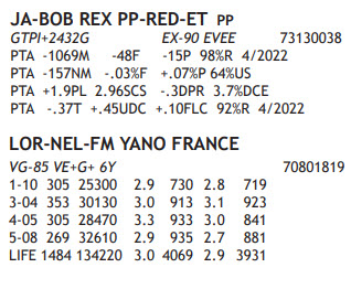 ALL BREED SUMMER PRODUCTION SALE 6096 NYS Route 8, New Berlin NY, 13411 Selling 130 Head Contact Agent: Katie Schultz 717-543-7883 Catalog | Terms of Auction Download CATALOG Download UPDATES Download ADDED LOTS Download SALE ORDER Catalog | Terms Download CATALOG Download UPDATES Download ADDED LOTS Download SALE ORDER All Items (183) Cattle (156) Embryos (3) Semen (24) Categories All Items (183) Cattle (156) Embryos (3) Semen (24) Search Item #: Keyword: Search Catalog Item #: Keyword: 20 items per page 50 items per page 100 items per page Go to page #: 1 , 2 , 3 , 4 , 5 , 6 #37 – SCO-LI WARRIOR SALENA-RED BORN 06/07/2020 R+W All-Amer Family DUE 8/13/22 TO SIEMERS DOC HANDSOME-ET 3144883164 PTPI +1692 Location: 6096 NYS Route 8, New Berlin NY, 13411 Contact Agent: Katie Schultz 717-543-7883 More Info / Bid Now Track this Item Sold High Bid: $3,000.00 – #6424 #37 – SCO-LI WARRIOR SALENA-RED Sold High Bid: $3,000 More Details More Info / Bid Track Item BORN 06/07/2020 R+W All-Amer Family DUE 8/13/22 TO SIEMERS DOC HANDSOME-ET 3144883164 PTPI +1692 Location: 6096 NYS Route 8, New Berlin NY, 13411 Contact Agent: Katie Schultz 717-543-7883 #38 – LICK-SPRING DBACK HOLLY BORN 09/28/2020 BRED HEIFER DUE 9/26/22 TO DUEBLONDIN IMMUNITY 109506267CAN PTPI +1759 Potential 4th Gen EX, VG Location: 6096 NYS Route 8, New Berlin NY, 13411 Contact Agent: Katie Schultz 717-543-7883 More Info / Bid Now Track this Item Sold High Bid: $1,200.00 – #2715 #38 – LICK-SPRING DBACK HOLLY Sold High Bid: $1,200 More Details More Info / Bid Track Item BORN 09/28/2020 BRED HEIFER DUE 9/26/22 TO DUEBLONDIN IMMUNITY 109506267CAN PTPI +1759 Potential 4th Gen EX, VG Location: 6096 NYS Route 8, New Berlin NY, 13411 Contact Agent: Katie Schultz 717-543-7883 #39 – MARTIN-PLACE TATOO TABOO-ET BORN 09/02/2019 From 4E-94 Tara Family MILKING Fresh 9/3/21 VG-88 VEVVV 2Y Potential 9th Gen Excellent 2-04 294 23279 4.1 955 3.1 728 Inc BRED 6/16/22 TO BULL Location: 6096 NYS Route 8, New Berlin NY, 13411 Contact Agent: Katie Schultz 717-543-7883 More Info / Bid Now Track this Item Sold High Bid: $1,700.00 – #100 #39 – MARTIN-PLACE TATOO TABOO-ET Sold High Bid: $1,700 More Details More Info / Bid Track Item BORN 09/02/2019 From 4E-94 Tara Family MILKING Fresh 9/3/21 VG-88 VEVVV 2Y Potential 9th Gen Excellent 2-04 294 23279 4.1 955 3.1 728 Inc BRED 6/16/22 TO BULL Location: 6096 NYS Route 8, New Berlin NY, 13411 Contact Agent: Katie Schultz 717-543-7883 #40 – SCO-LI UNDENIED MARNEY BORN 06/18/2020 From 2E-94 Special-Red Family Lot 41 Same Family BRED HEIFER DUE 8/20/22 TO SIEMERS DOC HANDSOME-ET 3144883164 PTPI +2051 Location: 6096 NYS Route 8, New Berlin NY, 13411 Contact Agent: Katie Schultz 717-543-7883 More Info / Bid Now Track this Item Sold High Bid: $1,000.00 – #359 #40 – SCO-LI UNDENIED MARNEY Sold High Bid: $1,000 More Details More Info / Bid Track Item BORN 06/18/2020 From 2E-94 Special-Red Family Lot 41 Same Family BRED HEIFER DUE 8/20/22 TO SIEMERS DOC HANDSOME-ET 3144883164 PTPI +2051 Location: 6096 NYS Route 8, New Berlin NY, 13411 Contact Agent: Katie Schultz 717-543-7883 #41 – SCO-LI LOYOLA MERYL BORN 06/14/2019 From 2E-94 Special-Red Family Lot 40 Same Family DRY - DUE 8/14/22 TO SCIENTIFIC B DEFIANT-ET 141123484 2-00 305 21984 3.3 721 2.8 607 PTPI +2055 Location: 6096 NYS Route 8, New Berlin NY, 13411 Contact Agent: Katie Schultz 717-543-7883 More Info / Bid Now Track this Item Sold High Bid: $1,575.00 – #500 #41 – SCO-LI LOYOLA MERYL Sold High Bid: $1,575 More Details More Info / Bid Track Item BORN 06/14/2019 From 2E-94 Special-Red Family Lot 40 Same Family DRY - DUE 8/14/22 TO SCIENTIFIC B DEFIANT-ET 141123484 2-00 305 21984 3.3 721 2.8 607 PTPI +2055 Location: 6096 NYS Route 8, New Berlin NY, 13411 Contact Agent: Katie Schultz 717-543-7883 #42 – SCO-LI WARRIOR RIO BORN 07/18/2020 From 4E-96 Rapture + A. Pocsh Family BRED HEIFER DUE 8/29/22 TO ZIMMERVIEW WONKA LOYOLA-P 73926711 PTPI +1827 Location: 6096 NYS Route 8, New Berlin NY, 13411 Contact Agent: Katie Schultz 717-543-7883 More Info / Bid Now Track this Item Sold High Bid: $1,650.00 – #259 #42 – SCO-LI WARRIOR RIO Sold High Bid: $1,650 More Details More Info / Bid Track Item BORN 07/18/2020 From 4E-96 Rapture + A. Pocsh Family BRED HEIFER DUE 8/29/22 TO ZIMMERVIEW WONKA LOYOLA-P 73926711 PTPI +1827 Location: 6096 NYS Route 8, New Berlin NY, 13411 Contact Agent: Katie Schultz 717-543-7883 #43 – SCO-LI UNDENIED HADLEY BORN 07/28/2020 From 4E-95 Helen BRED HEIFER DUE 8/11/22 TO SIEMERS DOC HANDSOME-ET 3144883164 PTPI +1964 Location: 6096 NYS Route 8, New Berlin NY, 13411 Contact Agent: Katie Schultz 717-543-7883 More Info / Bid Now Track this Item Sold High Bid: $1,475.00 – #100 #43 – SCO-LI UNDENIED HADLEY Sold High Bid: $1,475 More Details More Info / Bid Track Item BORN 07/28/2020 From 4E-95 Helen BRED HEIFER DUE 8/11/22 TO SIEMERS DOC HANDSOME-ET 3144883164 PTPI +1964 Location: 6096 NYS Route 8, New Berlin NY, 13411 Contact Agent: Katie Schultz 717-543-7883 #44 – TMBF SOLOMON DELIA BORN 06/09/2020 From 4E-97 Roxy [Destry] BRED HEIFER DUE AUGUST 2022 PTPI +1990 Location: 6096 NYS Route 8, New Berlin NY, 13411 Contact Agent: Katie Schultz 717-543-7883 More Info / Bid Now Track this Item Sold High Bid: $1,525.00 – #500 #44 – TMBF SOLOMON DELIA Sold High Bid: $1,525 More Details More Info / Bid Track Item BORN 06/09/2020 From 4E-97 Roxy [Destry] BRED HEIFER DUE AUGUST 2022 PTPI +1990 Location: 6096 NYS Route 8, New Berlin NY, 13411 Contact Agent: Katie Schultz 717-543-7883 #45 – WAIN-ACRES WB PARADICE BORN 12/14/2019 From 2x WDE Supreme Champion: 2E-96 Paradise Family SELLS FRESH PTPI +1827 Location: 6096 NYS Route 8, New Berlin NY, 13411 Contact Agent: Katie Schultz 717-543-7883 More Info / Bid Now Track this Item Sold High Bid: $1,125.00 – #5184 #45 – WAIN-ACRES WB PARADICE Sold High Bid: $1,125 More Details More Info / Bid Track Item BORN 12/14/2019 From 2x WDE Supreme Champion: 2E-96 Paradise Family SELLS