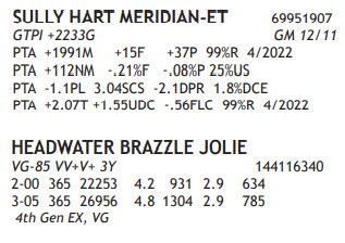 ALL BREED SUMMER PRODUCTION SALE 6096 NYS Route 8, New Berlin NY, 13411 Selling 130 Head Contact Agent: Katie Schultz 717-543-7883 Catalog | Terms of Auction Download CATALOG Download UPDATES Download ADDED LOTS Download SALE ORDER Catalog | Terms Download CATALOG Download UPDATES Download ADDED LOTS Download SALE ORDER All Items (183) Cattle (156) Embryos (3) Semen (24) Categories All Items (183) Cattle (156) Embryos (3) Semen (24) Search Item #: Keyword: Search Catalog Item #: Keyword: 20 items per page 50 items per page 100 items per page Go to page #: 5 , 6 , 7 , 8 , 9 , 10 #138 – HOBBY-ACRES SEEGER TOOYOU BORN 10/11/2018 Lots 136, 137 Same Family MILKING Fresh 06/19/22 VG-86 VVV+V 3Y RECORD IN PROGRESS Location: 6096 NYS Route 8, New Berlin NY, 13411 Contact Agent: Katie Schultz 717-543-7883 More Info / Bid Now Track this Item Sold High Bid: $2,500.00 – #5158 #138 – HOBBY-ACRES SEEGER TOOYOU Sold High Bid: $2,500 More Details More Info / Bid Track Item BORN 10/11/2018 Lots 136, 137 Same Family MILKING Fresh 06/19/22 VG-86 VVV+V 3Y RECORD IN PROGRESS Location: 6096 NYS Route 8, New Berlin NY, 13411 Contact Agent: Katie Schultz 717-543-7883 #139 – HEADWATER ARTIST RENATA BORN 07/04/2020 MILKING Fresh 7/21/22 PTPI +1666 RECORD IN PROGRESS [VG-86 Maternal Sister] Dam of Lot 140 Location: 6096 NYS Route 8, New Berlin NY, 13411 Contact Agent: Katie Schultz 717-543-7883 More Info / Bid Now Track this Item Sold High Bid: $1,900.00 – #359 #139 – HEADWATER ARTIST RENATA Sold High Bid: $1,900 More Details More Info / Bid Track Item BORN 07/04/2020 MILKING Fresh 7/21/22 PTPI +1666 RECORD IN PROGRESS [VG-86 Maternal Sister] Dam of Lot 140 Location: 6096 NYS Route 8, New Berlin NY, 13411 Contact Agent: Katie Schultz 717-543-7883 #140 – HEADWATER D RAYNA BORN 05/09/2021 OPEN HEIFER PTPI +1773 Potential 4th Gen EX, VG Location: 6096 NYS Route 8, New Berlin NY, 13411 Contact Agent: Katie Schultz 717-543-7883 More Info / Bid Now Track this Item Sold High Bid: $825.00 – #359 #140 – HEADWATER D RAYNA Sold High Bid: $825 More Details More Info / Bid Track Item BORN 05/09/2021 OPEN HEIFER PTPI +1773 Potential 4th Gen EX, VG Location: 6096 NYS Route 8, New Berlin NY, 13411 Contact Agent: Katie Schultz 717-543-7883 #141 – HEADWATER MERIDAN JULIE BORN 06/25/2020 MILKING Fresh 7/22/22 PTPI +2000 Potential 5th Gen EX, VG RECORD IN PROGRESS Location: 6096 NYS Route 8, New Berlin NY, 13411 Contact Agent: Katie Schultz 717-543-7883 More Info / Bid Now Track this Item Sold High Bid: $1,700.00 – #100 #141 – HEADWATER MERIDAN JULIE Sold High Bid: $1,700 More Details More Info / Bid Track Item BORN 06/25/2020 MILKING Fresh 7/22/22 PTPI +2000 Potential 5th Gen EX, VG RECORD IN PROGRESS Location: 6096 NYS Route 8, New Berlin NY, 13411 Contact Agent: Katie Schultz 717-543-7883 #142 – HEADWATER CHIEF CLARISSA BORN 06/14/2021 OPEN HEIFER PTPI +1952 Location: 6096 NYS Route 8, New Berlin NY, 13411 Contact Agent: Katie Schultz 717-543-7883 More Info / Bid Now Track this Item Sold High Bid: $600.00 – #5 #142 – HEADWATER CHIEF CLARISSA Sold High Bid: $600 More Details More Info / Bid Track Item BORN 06/14/2021 OPEN HEIFER PTPI +1952 Location: 6096 NYS Route 8, New Berlin NY, 13411 Contact Agent: Katie Schultz 717-543-7883 #143 – GRADE Fresh 6/15/22 S:Ammo Bred 7/28/22 Have It All 515H0371 Location: 6096 NYS Route 8, New Berlin NY, 13411 Contact Agent: Katie Schultz 717-543-7883 More Info / Bid Now Track this Item Sold High Bid: $2,000.00 – #666 #143 – GRADE Sold High Bid: $2,000 More Details More Info / Bid Track Item Fresh 6/15/22 S:Ammo Bred 7/28/22 Have It All 515H0371 Location: 6096 NYS Route 8, New Berlin NY, 13411 Contact Agent: Katie Schultz 717-543-7883 #144 – GRADE 1Springer – Due soon Location: 6096 NYS Route 8, New Berlin NY, 13411 Contact Agent: Katie Schultz 717-543-7883 More Info / Bid Now Track this Item Sold High Bid: $1,050.00 – #355 #144 – GRADE Sold High Bid: $1,050 More Details More Info / Bid Track Item 1Springer – Due soon Location: 6096 NYS Route 8, New Berlin NY, 13411 Contact Agent: Katie Schultz 717-543-7883 #145 – Terry View Colton Roxy VG85 Born 9/10/19 S: Chilli Action Colton D: Crystal Brook Kyros Rocky EX94, 2D:VG87 Fresh 7/18/22 Location: 6096 NYS Route 8, New Berlin NY, 13411 Contact Agent: Katie Schultz 717-543-7883 More Info / Bid Now Track this Item Sold High Bid: $1,550.00 – #1027 #145 – Terry View Colton Roxy VG85 Sold High Bid: $1,550 More Details More Info / Bid Track Item Born 9/10/19 S: Chilli Action Colton D: Crystal Brook Kyros Rocky EX94, 2D:VG87 Fresh 7/18/22 Location: 6096 NYS Route 8, New Berlin NY, 13411 Contact Agent: Katie Schultz 717-543-7883 #145.5 – CALF Elig to reg.- Buyers Expense Heifer born 7/18/22 S: Chrome Location: 6096 NYS Route 8, New Berlin NY, 13411 Contact Agent: Katie Schultz 717-543-7883 More Info / Bid Now Track this Item Sold High Bid: $310.00 – #1277 #145.5 – CALF Sold High Bid: $310 More Details More Info / Bid Track Item Elig to reg.- Buyers Expense Heifer born 7/18/22 S: Chrome Location: 6096 NYS Route 8, New Berlin NY, 13411 Contact Agent: Katie Schultz 717-543-7883 #146 – Lor-Nel-FM Hangtime Éclair Barn 908 AAA#35 Born 8/1/20 S: Cookiecutter Hangtime D:GP80 Lor-Nel-FM Ellie 2-08 305 25130 3.8 960 2.9 737 2D: VG87 Lor-Nel-FM Hefty Elipse 4-00 361 37620 3.1 1179 2.9 1076 Fresh 5/22/22 Milking 72# Location: 6096 NYS Route 8, New Berlin NY, 13411 Contact Agent: Katie Schultz 717-543-7883 More Info / Bid Now Track this Item Sold High Bid: $1,500.00 – #100 #146 – Lor-Nel-FM Hangtime Éclair Sold High Bid: $1,500 More Details More Info / Bid Track Item Barn 908 AAA#35 Born 8/1/20 S: Cookiecutter Hangtime D:GP80 Lor-Nel-FM Ellie 2-08 305 25130 3.8 960 2.9 737 2D: VG87 Lor-Nel-FM Hefty Elipse 4-00 361 37620 3.1 1179 2.9 1076 Fresh 5/22/22 Milking 72# Location: 6096 NYS Route 8, New Berlin NY, 13411 Contact Agent: Katie Schultz 717-543-7883 #147 – Lor-Nel-FM Ada G781 Barn #896 AAA#243 Born 5/15