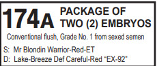 TWO (2) EMBRYOS Conventional flush, Grade No. 1 from sexed semen