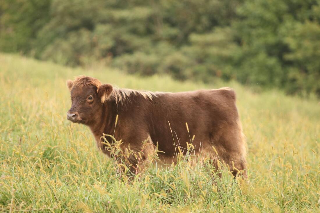 LaBella is one of our favorite calves born this year. She is a beautiful dun heifer. Not only is she very feminine and correct, but she is also sweet as can be! Her dam is a stunning cow with perfect udder. She was imported from Canada and is all Canadian and Scottish Genetics. Her sire is Skye High Cornerstone, who has won Get of Sire at multiple shows and has produced many show winners. (photo of sire and dam attached). LaBella is calfhood vaccinated for Brucellosis and does qualify to go to western states. You can't go wrong with this sweet girl! She is destined to be a really good one!