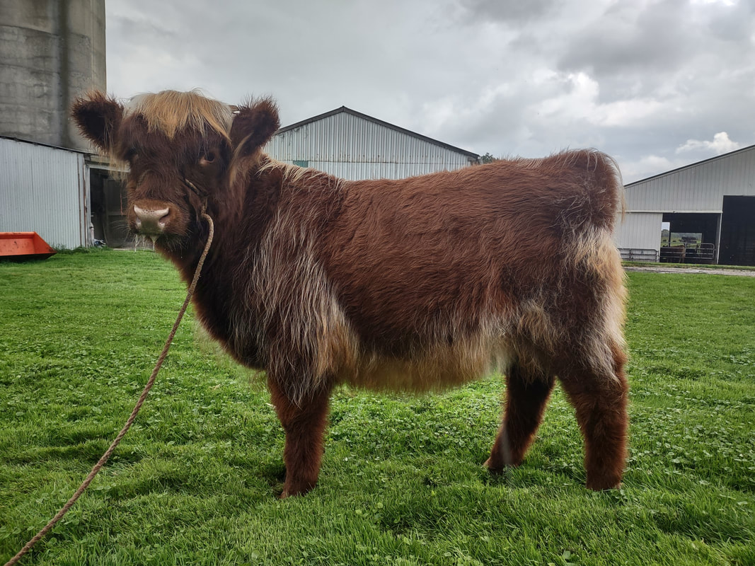 ??ADDITIONAL INFORMATION: To those who have asked for another “Fancy Pants”, here you go. This heifer is a stunner - dark red with cream frosted highlights. Calm, gentle, and sweet; she was easily halter broken. Misty is one you will enjoy interacting with and is sure to be a standout in your pasture. She has show heifer potential and boasts a stacked pedigree with familiar names ranging from Yarnelle Betula to Gusgurlach of Windrush. Heifers this pretty are hard to come by, get her while you have the chance.