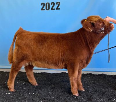 SWM Lavinia's sire, SWM Swipe Right, had fantastic rib eye ultrasound results at the 2022 National Western Stock Show as a yearling bull leader! In 2021, Swipe earned Grand Champion Highland Bull at the New York State Fair, Boonville Fair, Southeast Highland Show; Reserve Grand Champion Bull at NEHCA Spring Show, Champion Intermediate Yearling Bull at the MAHA Spring Classic; 2022 Reserve Intermediate Yearling Bull at the National Western Stock Show.