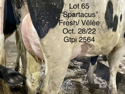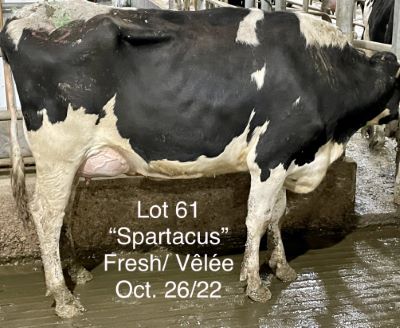 USDA: 840003217449334 PERE: SPARTACU Lactation #: 1 LAIT KG: 88 REPRO: FRESH GTPI: 2564 NEE: 12/24/20 PEDIGREE: NC Spartacus x G Crankit x EX Domingo x VG 87 Manager x 4 GEN VG or EX VELEE: 10/28/22