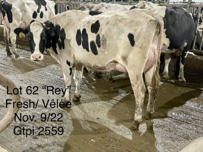 USDA: 840003217449311 PERE: REY Lactation #: 1 LAIT KG: 78 REPRO: FRAICHE GTPI: 2559 NEE: 12/02/20 PEDIGREE: NC Rey x EX 93 Mogul x EX 91 Baxter x GP84 Bret x 4 GEN VG VELEE: 11/09/22