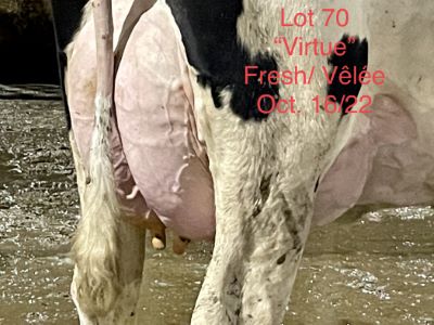 USDA: 3151977543 PERE: VIRTUE Lactation #: 2 LAIT KG: REPRO: FRAICHE GTPI: NEE: 12/12/19 PEDIGREE: NC Virtue x Icybull VELEE: 10/16/22