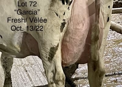 USDA: 111053948 PERE: GARCIA Lactation #: 3 LAIT KG: REPRO: FRAICHE GTPI: NEE: 06/26/18 PEDIGREE: Garcia x GP 83 Razor VELEE: 10/13/22