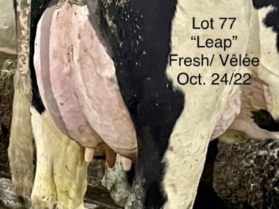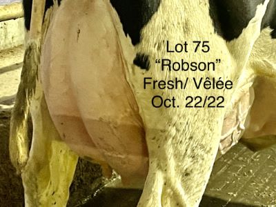 USDA: 840003217449332 PERE: HOTLINE Lactation #: 1 LAIT KG: 85 REPRO: FRAICHE GTPI: 2200 NEE: 12/21/20 PEDIGREE: NC Hotline x EX 93 Chance x EX Billion x VG 88 Judge VELEE: 10/27/22