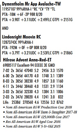 One of the calves for the choice, Aries-Red is 2015 GTPI and 3.43T, 2.85 UC. Dam of choice is over 300,000 pounds of milk lifetime and the Avalanche sister, Adel is VG-88 at 2-3!