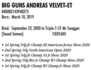 • 1st Spring Yrlg/Jr Champ WI Champ Jr Show 2020 Terms: 100% Due Now