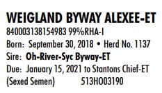 (Sexed Semen) 513HO03190 Terms: 100% Due Now