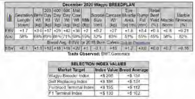 traits, Carcass Weight, Marble Score and Wagyu Breeder Index. She is the #13