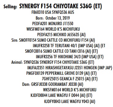 Cattle Co Michifuku F154. Her pedigree features elite foundation Wagyu bulls