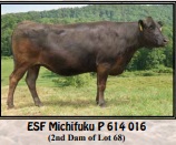 She is 91.2 % Tajima and has an elite carcass trait sire stack of Sanjirou x Michifuku x