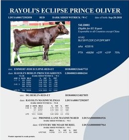 His Dam is fresh again. Had 124# on test at 18 dim. 3.7 fat and 3.0 protein
