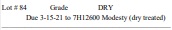 Due 3-15-21 to 7H12600 Modesty (dry treated)