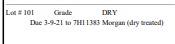 Due 3-9-21 to 7H11383 Morgan (dry treated)