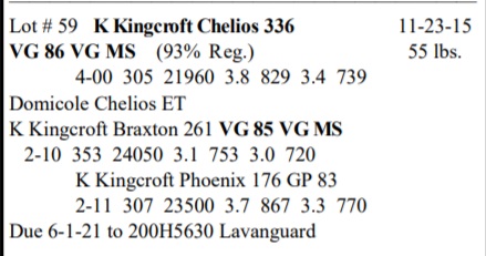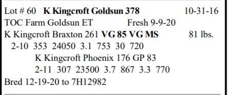K Kingcroft Braxton 261 VG 85 VG MS 81 lbs