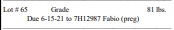 81 lbs. Due 6-15-21 to 7H12987 Fabio (preg)