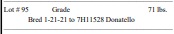 71 lbs. Bred 1-21-21 to 7H11528 Donatello