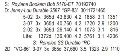 1/20 test: 139 lbs. 5.0f 3.1p SCC 116