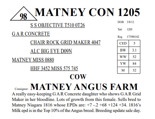 Maker in her bloodline. Lots of growth from this female. Sells bred to